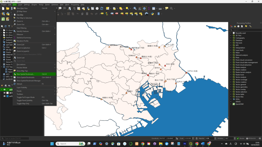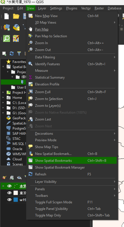 保存した後に、Show Spatial Bookmarksを選択する
