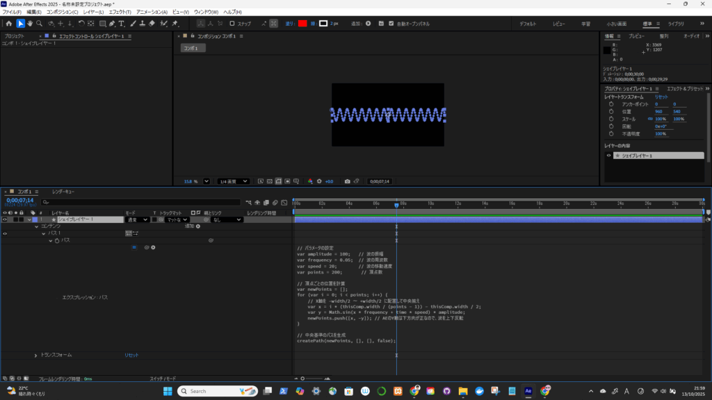 var x = i * (thisComp.width / (points – 1)) – thisComp.width / 2;
