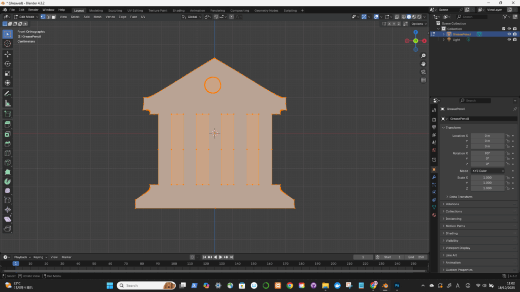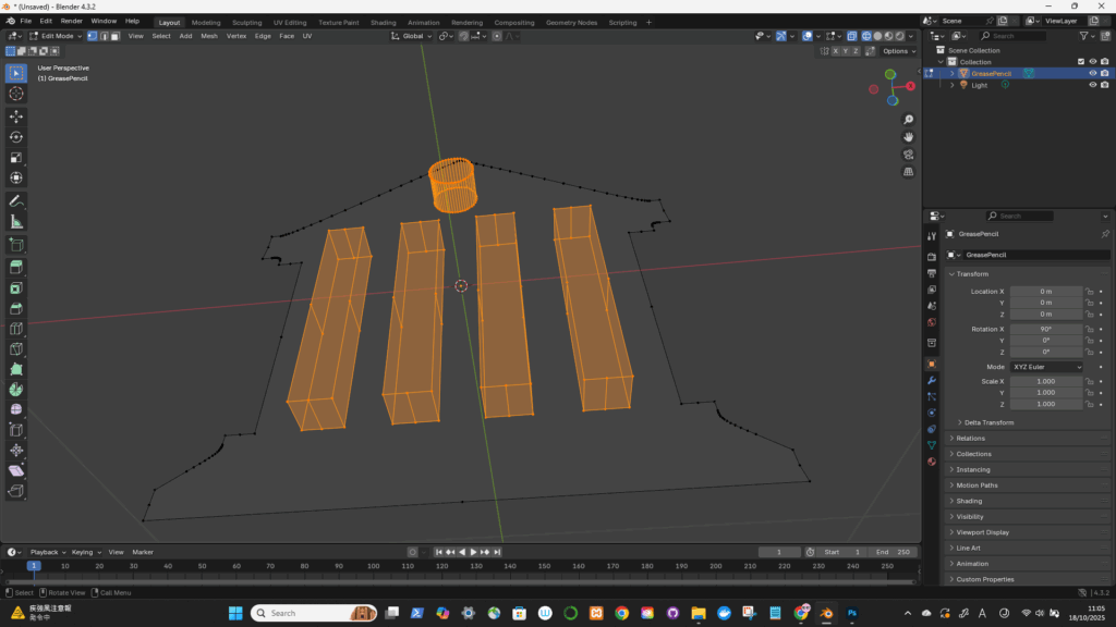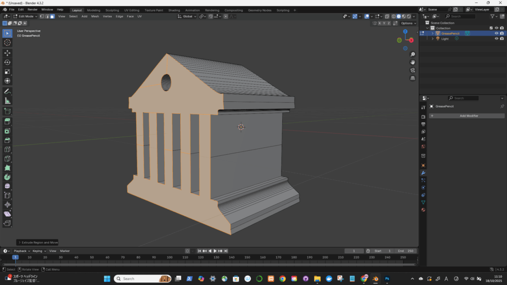 ワイヤーフレームにして、向くところをExtrude