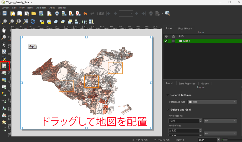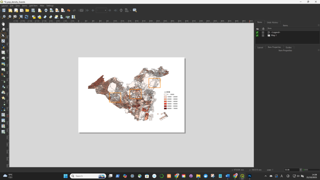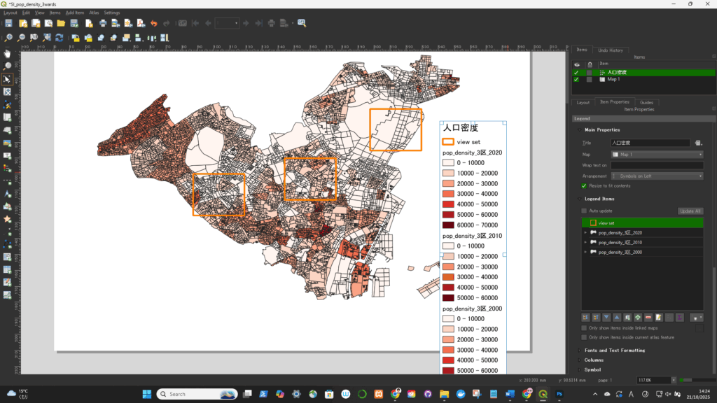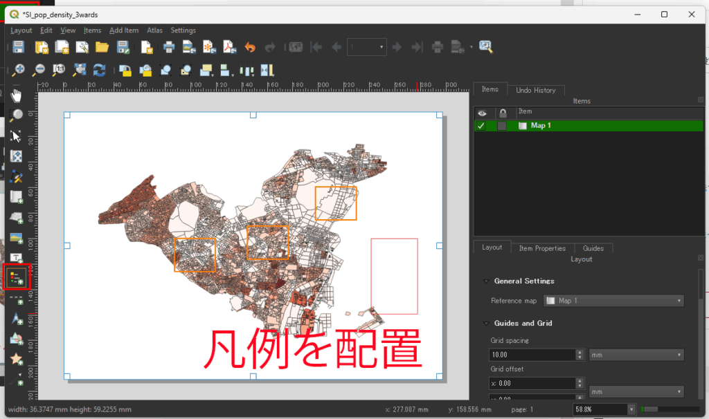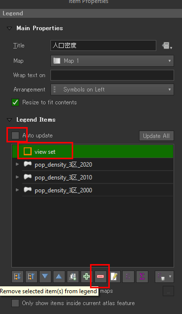 凡例が配置されたが、不要な項目があるので削除が必要