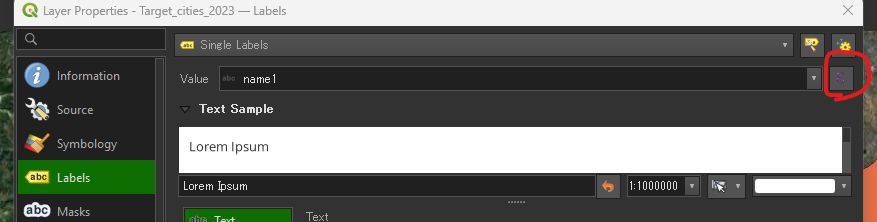 平方メートルの場合: ”<name>” || ‘\n’ || format_number( $area , 0 ) || ‘ m²’
