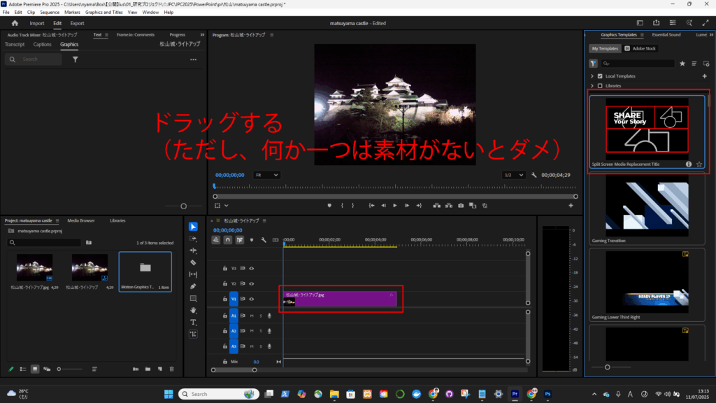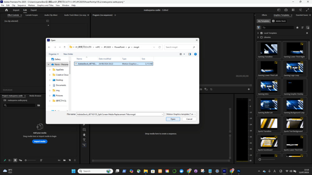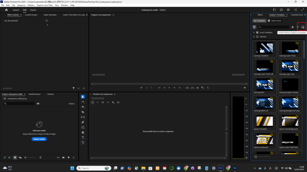 モーショングラフィックス・テンプレート(.mogrt)の使い方