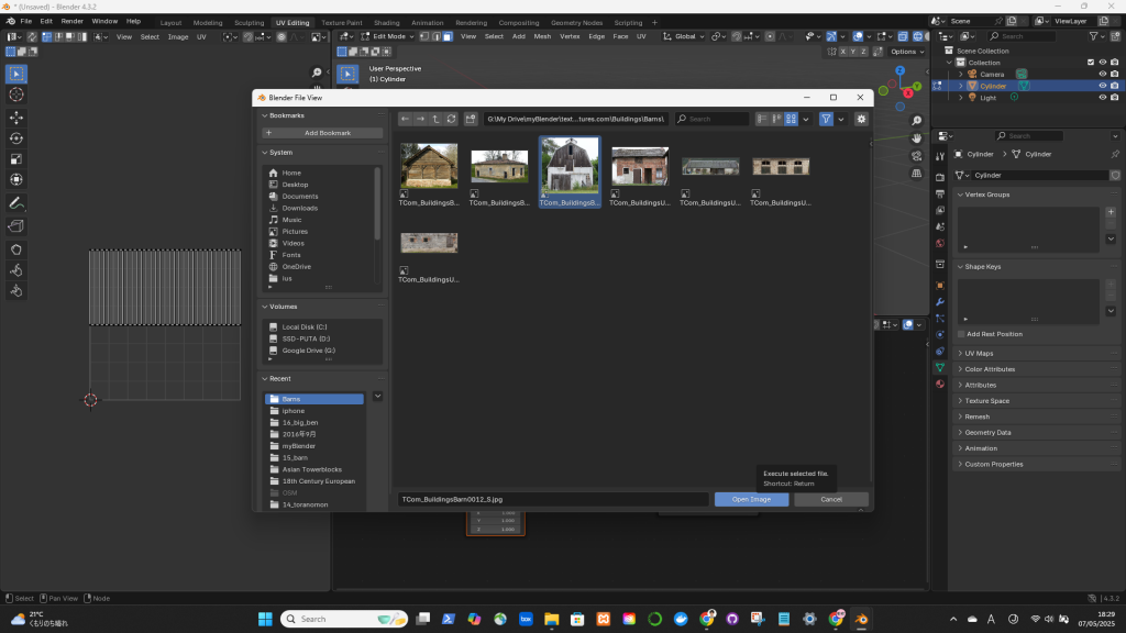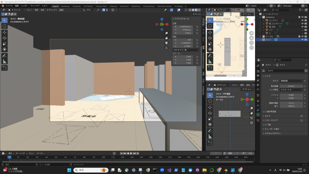 まずは柱の位置をトレース。最初に図面のスケールを大まかにでも調整しておいた方が感覚と近くなるので、その後のモデリング作業がやり易い。