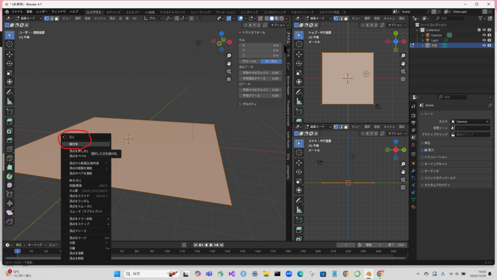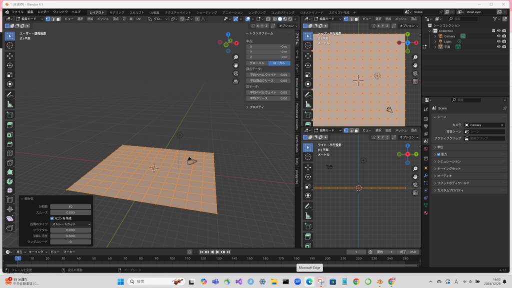 平面に「サブディビジョンサーフェス」モディファイアを追加する。