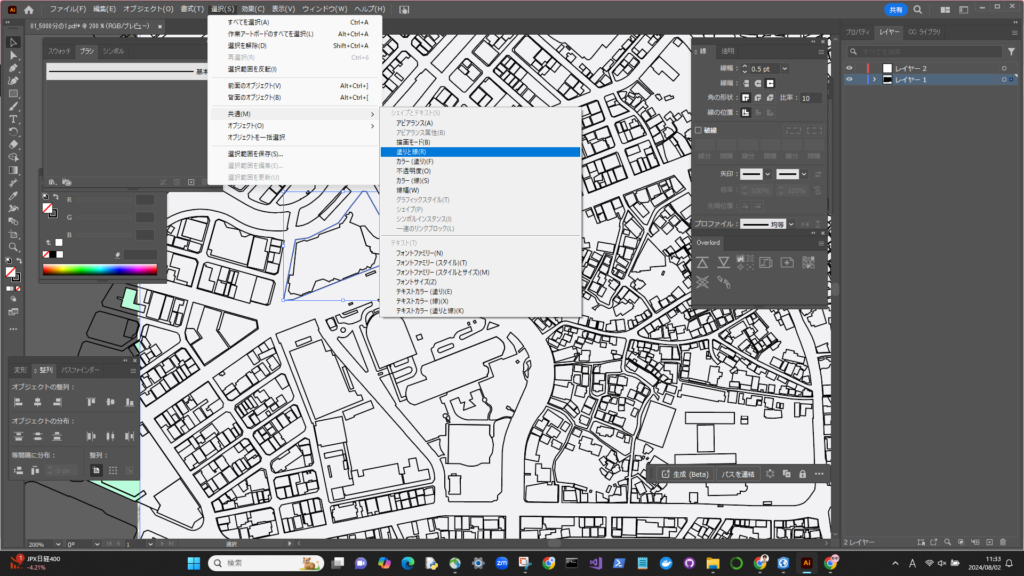 オブジェクト選択 → 選択 → 共通 →※適宜選択