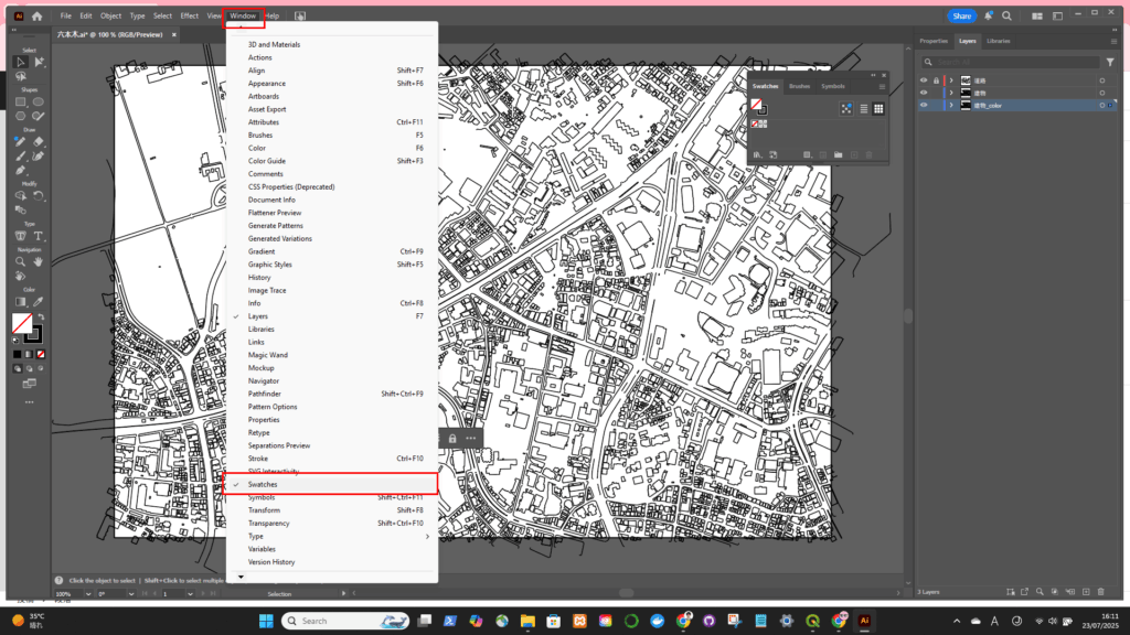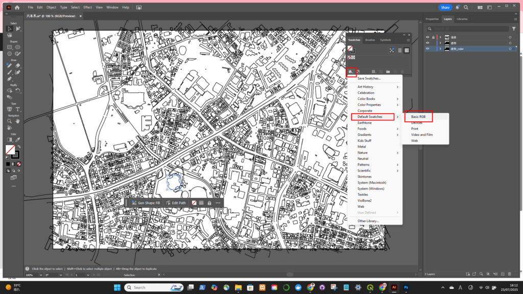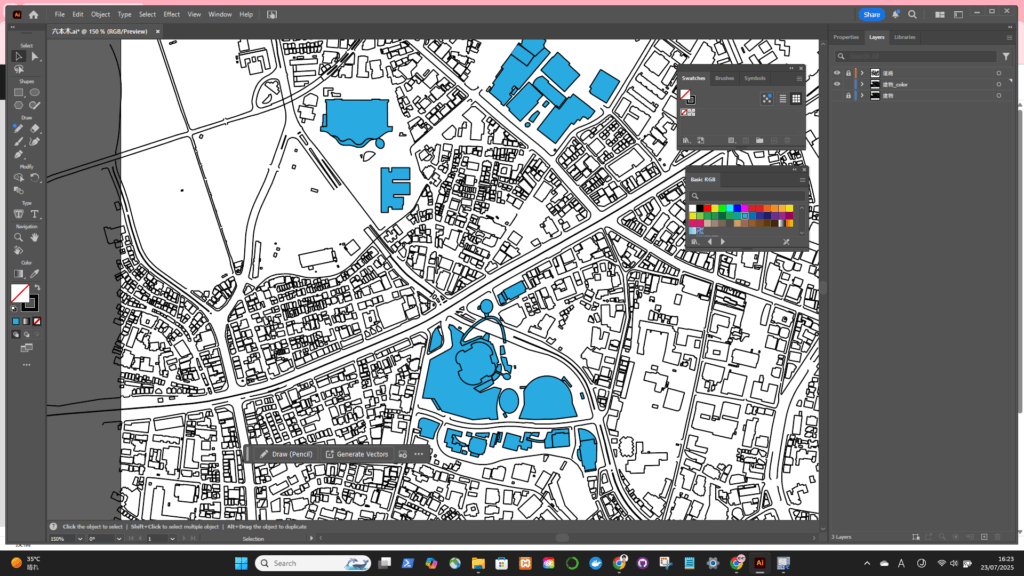 Illustratorでアピアランスを調整するので、ArcGISでは色や線などの調整する必要なし