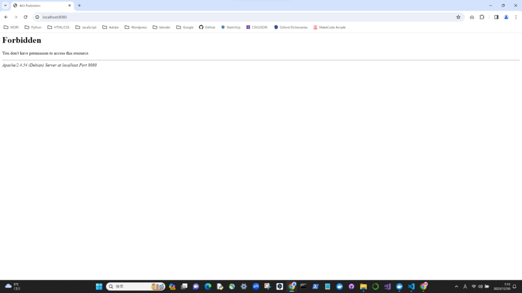 但し、以下のエラーがでた際は、いくら待ってもダメなので、作成された「html」フォルダを削除して、コンテナも「docker compose down –rmi all」で削除してから、再びコンテナ作成をする必要がある。