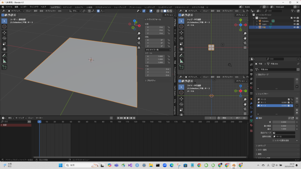 キー2でも同様に、プロポーショナル変形のアニメーションをやってみた。なお、動画の書き出しはCyclesで行ったが、このケースではあまり変わらない(?)