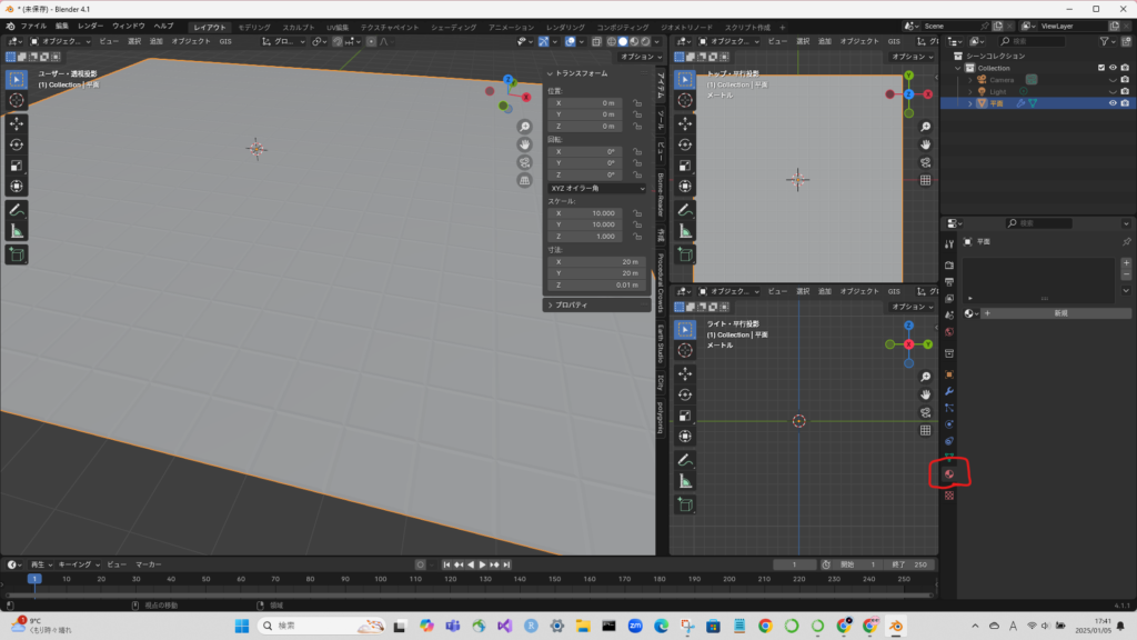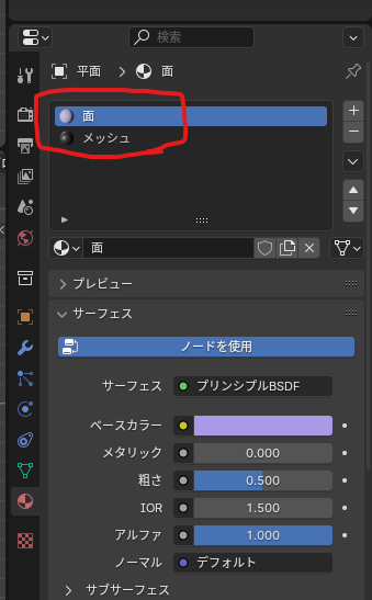 マテリアルの設定をする。