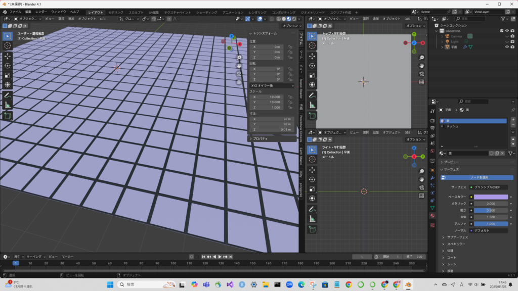 ※分かりやすいように平面にメッシュを付けた。