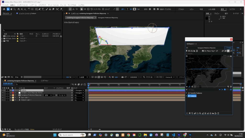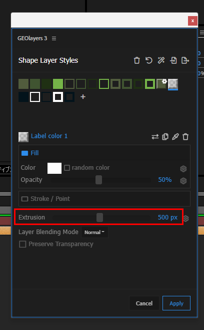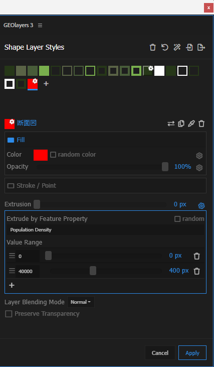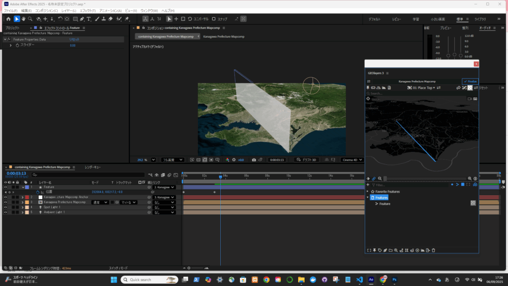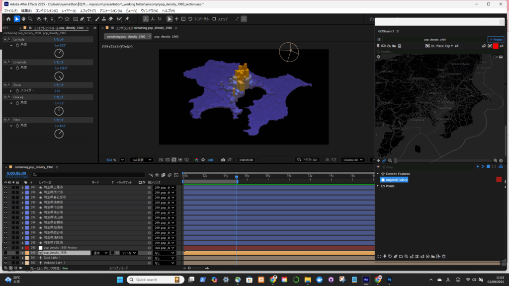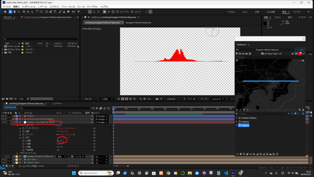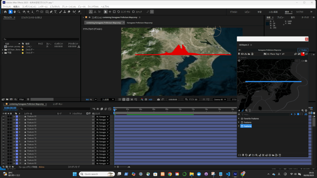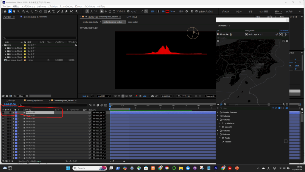 ※はじっこのゼロの値のFeatureの表示をオフにしないと変な表示になる(一番上のシェイプレイヤー)。