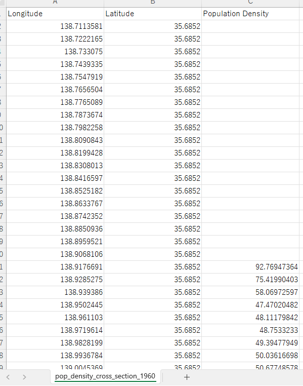 皇居を通る緯線のgeojsonを用意した。普通に描画すると「線」のみ。