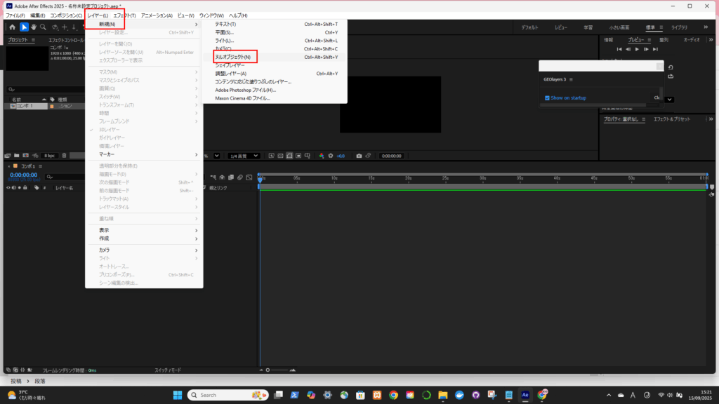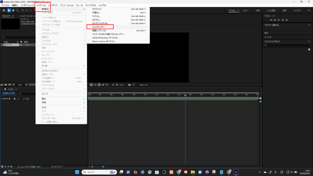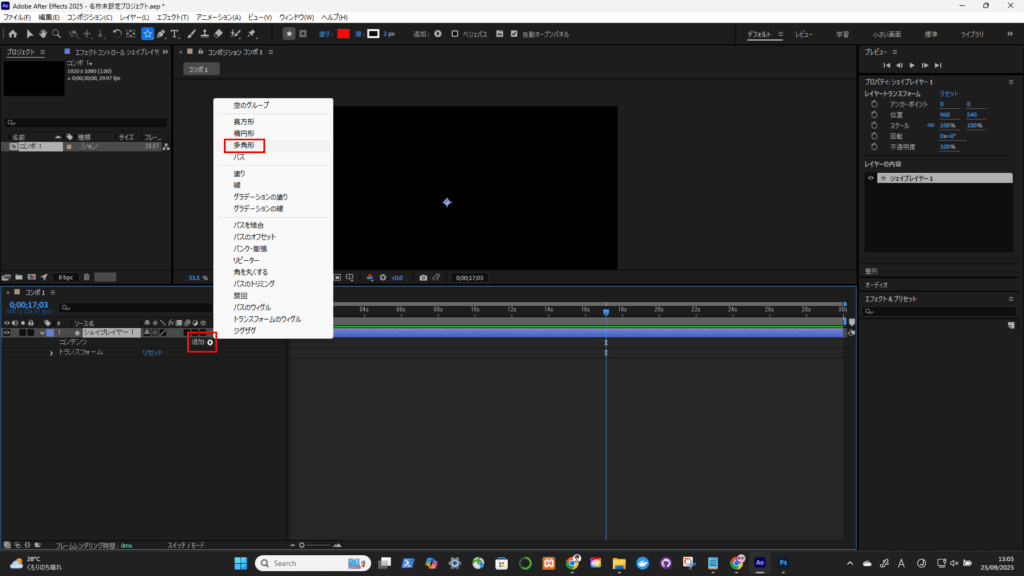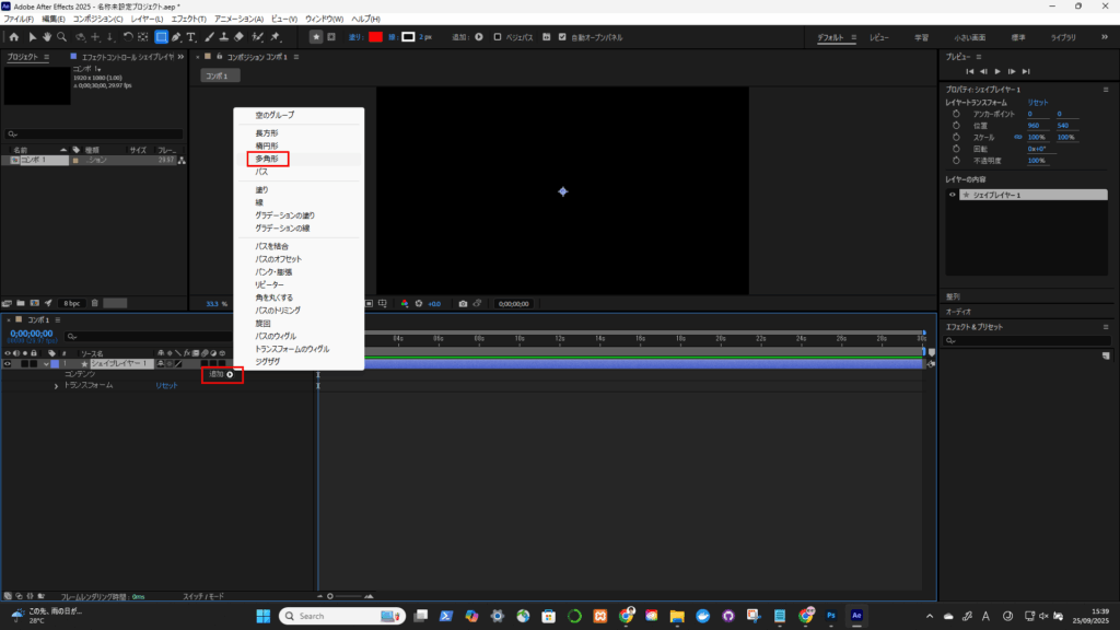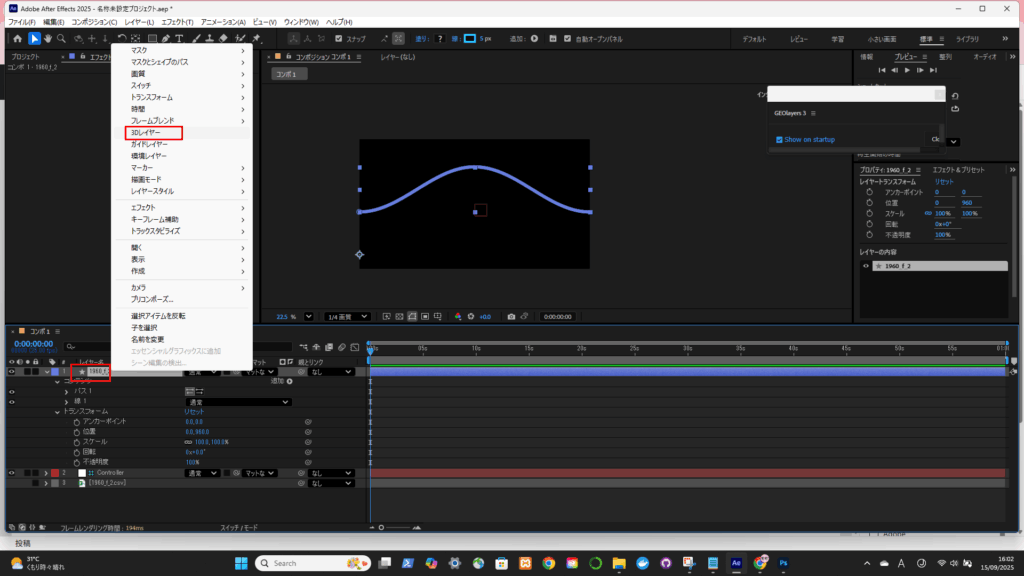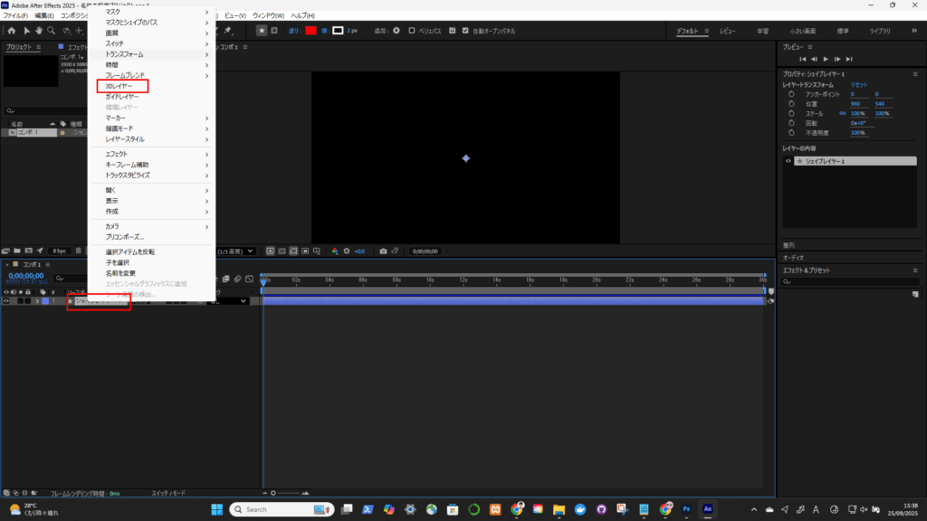 シェイプレイヤーを3Dレイヤー(クラシック3D)に変更する