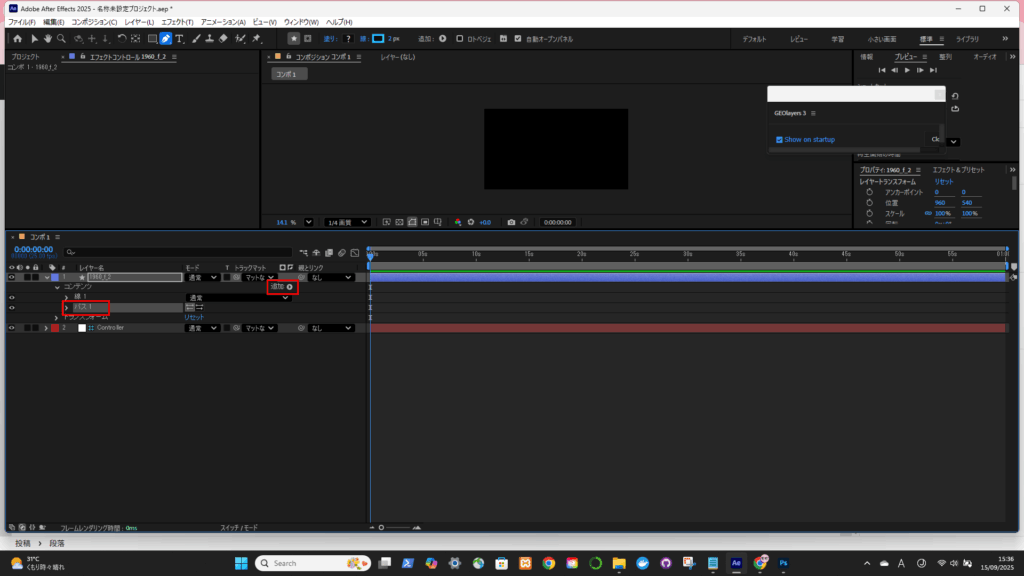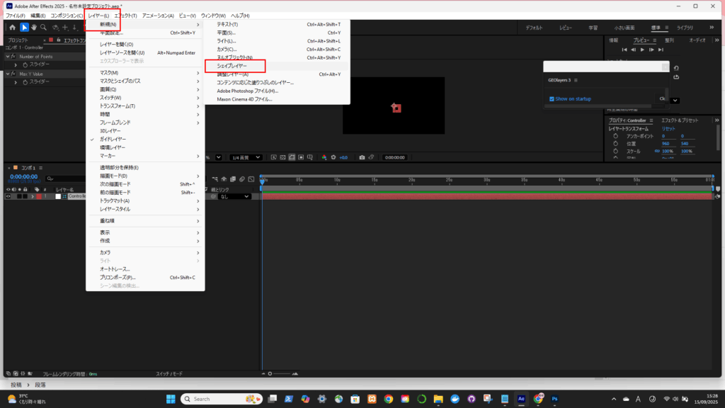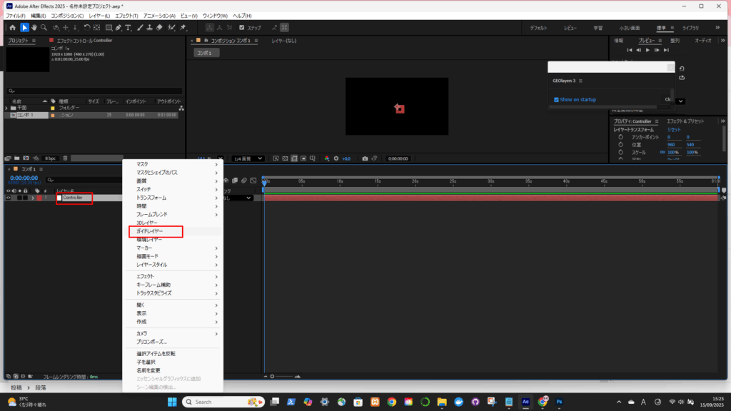 新規ヌルレイヤーを作成して、名前を「Controller」にする。