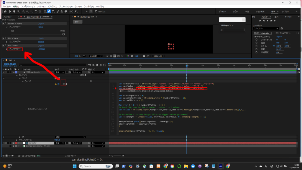 var maxYValue = thisComp.layer(“Controller”).effect(“Max Y Value”)(“スライダー”);