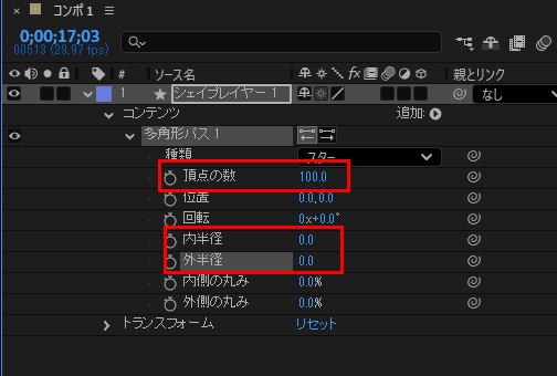 頂点の数=100、内半径 = 外半径 = 0 を調整