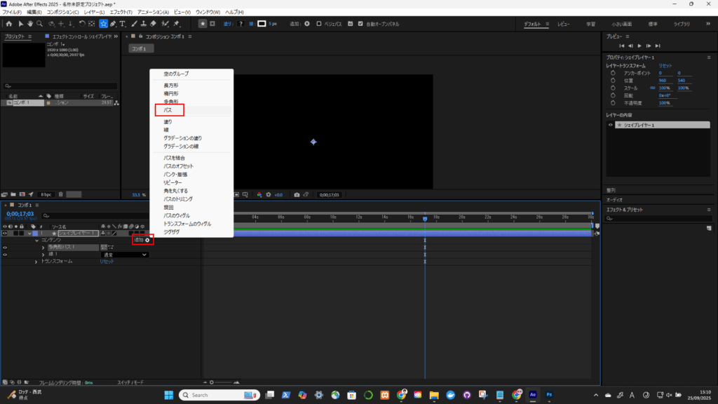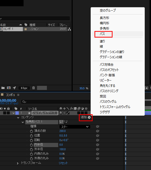 コンテンツに「パス」も追加する(最終的にはパスが線の上にある必要あり)