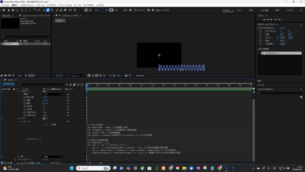 var numberOfPoints = thisComp.layer(“Controller”).effect(“Number of Points”)(“スライダー”);