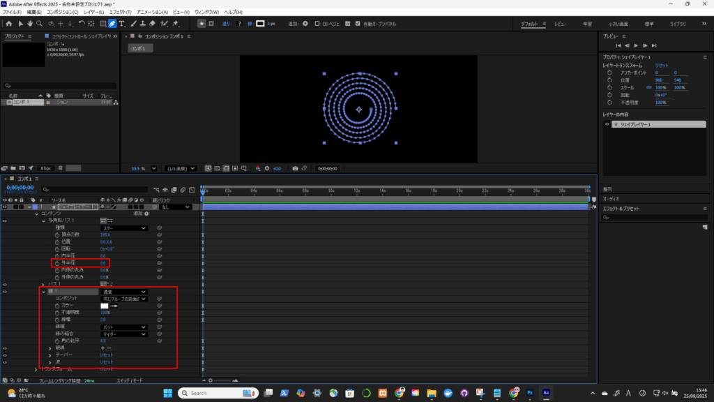 というより、各シェイプでコントロールせずに、ヌルで調整した方が良い!